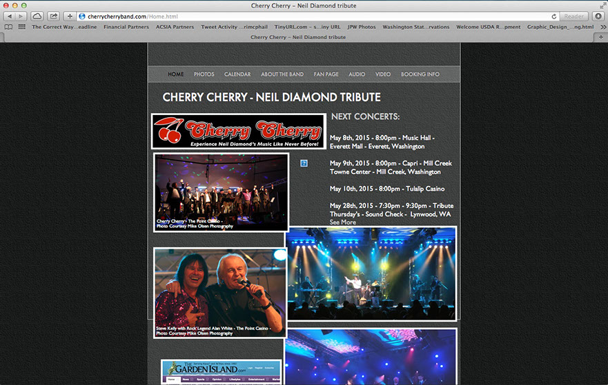 Cherry Cherry showcases their concert footage, booking information and concert calendar. Crisp and clean to showcase the fun and wild concert atmosphere.