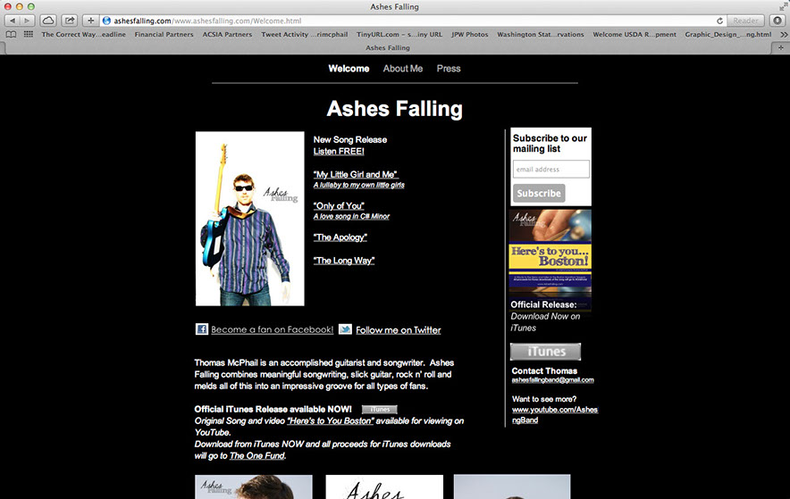 Seasoned artist Thomas McPhail wanted a full photo shoot as well as website to showcase his new album and free song releases as well as keep fans up to date on tour info and iTunes releases.